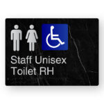 Staff Unisex Toilet & Ambulant Toilet Braille Sign in a Black Marble & Silver Finish