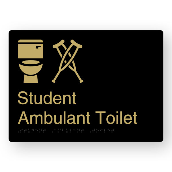Student Ambulant Toilet Braille Sign in a Black & Satin Brass Finish