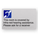 Production Method: BrailleFace – Using our patented BrailleFace production method, each Braille sign will be formed from a single piece of metal creating a compliant continuous face, soft to touch Braille Tactile Sign with no parts adhered to the surface of the sign in any way. As a result, the signs construction will deter vandalism & the sign face has no joins to harbour bacteria. Each Braille sign is made from a single sheet of anodised aluminium with the text and/or figures printed black.
