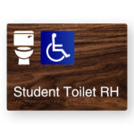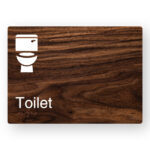 Production Method: BrailleFace – Using our patented BrailleFace production method, each Braille sign will be formed from a single piece of metal creating a compliant continuous face, soft to touch Braille Tactile Sign with no parts adhered to the surface of the sign in any way. As a result, the signs construction will deter vandalism & the sign face has no joins to harbour bacteria. Each Braille sign is made from a single sheet of dark woodgrain printed aluminium with white printed text and/or figures.