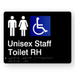 Production Method: BrailleForm – Using our exclusive BrailleForm production method, each sign will be formed from a single piece of acrylic creating a compliant continuous face, soft to touch Braille Sign with no parts adhered to the surface of the sign in any way. As a result, the signs construction will deter vandalism & the sign face has no joins to harbour bacteria.