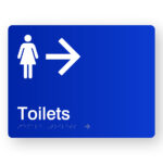 Unisex Accessible Toilet RH (Right Arrow) Braille Sign in Blue Acrylic