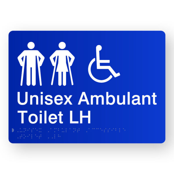 Unisex Ambulant Accessible Toilet LH Braille Sign in Blue Acrylic