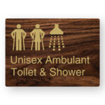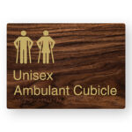 Unisex Ambulant Toilet Braille Sign in a Dark Woodgrain & Brass Finish
