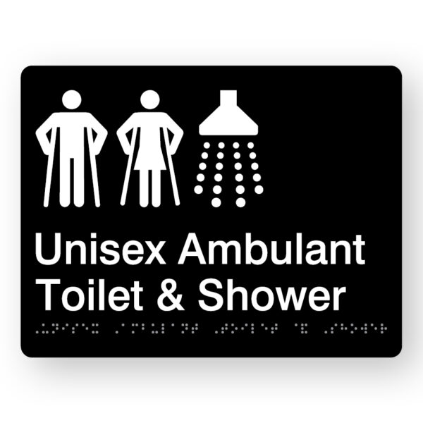 Unisex Ambulant Toilet & Shower Braille Sign in Black Acrylic