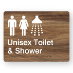 Unisex Staff Accessible Toilet RH & Shower Braille Sign in Mid-Tone Woodgrain in Acrylic