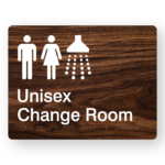 Unisex Toilet (Left Arrow) Braille Sign in Dark Woodgrain