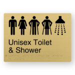 Production Method: BrailleFace – Using our patented BrailleFace production method, each Braille sign will be formed from a single piece of metal creating a compliant continuous face, soft to touch Braille Tactile Sign with no parts adhered to the surface of the sign in any way. As a result, the signs construction will deter vandalism & the sign face has no joins to harbour bacteria. Each Braille sign is made from a single sheet of satin brass finish aluminium with the text and/or figures printed black.