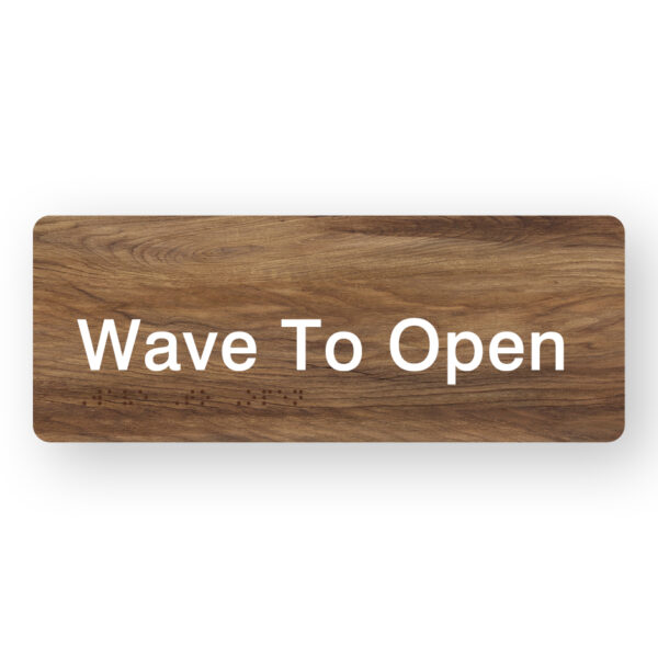 Wave To Open Braille Sign in Mid-Tone Woodgrain in Acrylic
