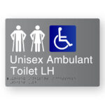 Production Method: BrailleFace – Using our patented BrailleFace production method, each Braille sign will be formed from a single piece of metal creating a compliant continuous face, soft to touch Braille Tactile Sign with no parts adhered to the surface of the sign in any way. As a result, the signs construction will deter vandalism & the sign face has no joins to harbour bacteria. Each Braille sign is made from a single sheet of satin 2pac grey aluminium with the text and/or figures printed white.