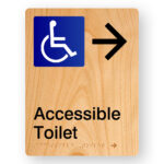 Accessible Entrance (Right Arrow) Braille Sign in Portrait Woodgrain Acrylic