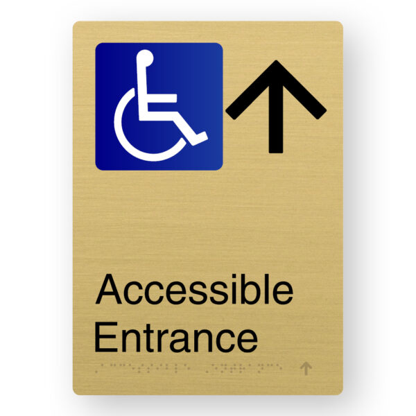 Accessible Entrance (Up Arrow) Braille Sign in Portrait Satin Brass Finish