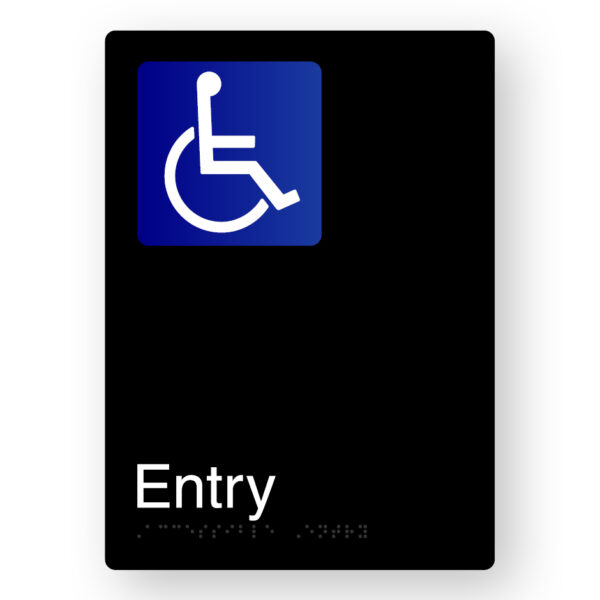 Accessible Entry Braille Sign in Portrait Black Aluminium