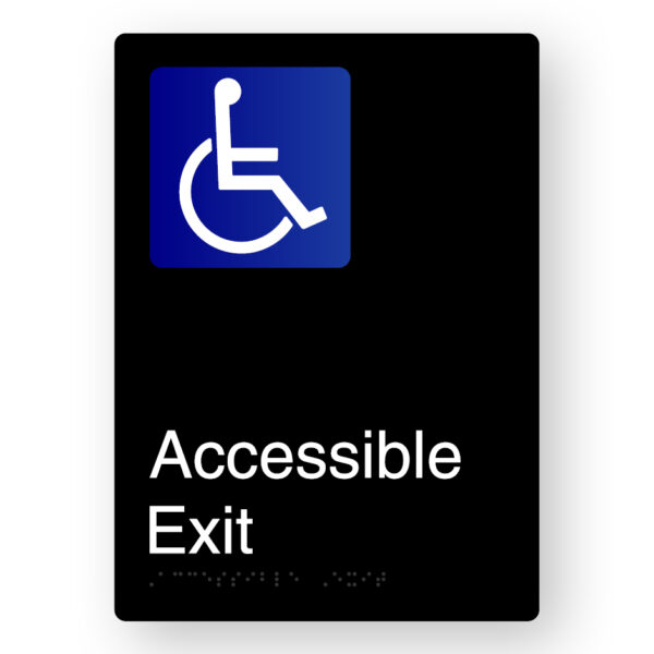 Accessible Exit Braille Sign in Portrait Black Aluminium