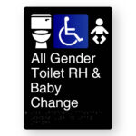 Production Method: BrailleFace – Using our patented BrailleFace production method, each Braille sign will be formed from a single piece of metal creating a compliant continuous face, soft to touch Braille Tactile Sign with no parts adhered to the surface of the sign in any way. As a result, the signs construction will deter vandalism & the sign face has no joins to harbour bacteria. Each Braille sign is made from a single sheet of satin 2pac black aluminium with the text and/or figures printed white.