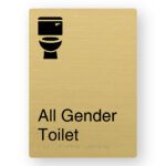 Production Method: BrailleFace – Using our patented BrailleFace production method, each Braille sign will be formed from a single piece of metal creating a compliant continuous face, soft to touch Braille Tactile Sign with no parts adhered to the surface of the sign in any way. As a result, the signs construction will deter vandalism & the sign face has no joins to harbour bacteria. Each Braille sign is made from a single sheet of satin brass finish Aluminium with the text and/or figures printed black.