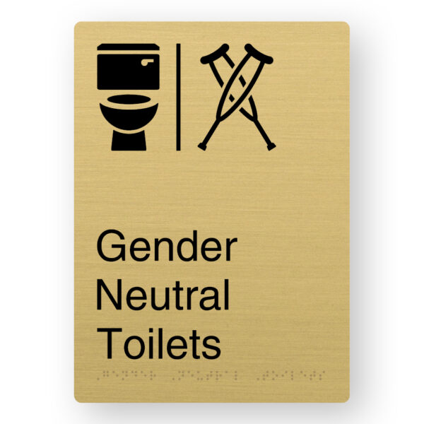 Airlock – Gender Neutral Toilets Braille Sign in Portrait Satin Brass Finish