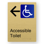 Production Method: BrailleFace – Using our patented BrailleFace production method, each Braille sign will be formed from a single piece of metal creating a compliant continuous face, soft to touch Braille Tactile Sign with no parts adhered to the surface of the sign in any way. As a result, the signs construction will deter vandalism & the sign face has no joins to harbour bacteria. Each Braille sign is made from a single sheet of satin brass finish Aluminium with the text and/or figures printed black.