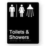 Airlock – Toilets & Showers Braille Sign in Portrait Black Acrylic