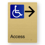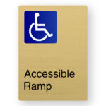 Production Method: BrailleFace – Using our patented BrailleFace production method, each Braille sign will be formed from a single piece of metal creating a compliant continuous face, soft to touch Braille Tactile Sign with no parts adhered to the surface of the sign in any way. As a result, the signs construction will deter vandalism & the sign face has no joins to harbour bacteria. Each Braille sign is made from a single sheet of satin brass finish Aluminium with the text and/or figures printed black.