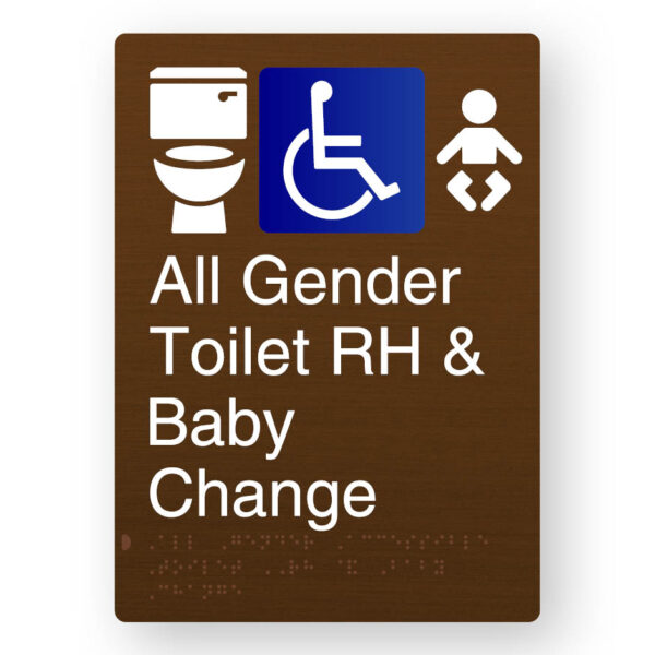 All Gender Accessible Toilet RH & Baby Change Braille Sign in Portrait Bronze Finish