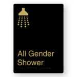 All Gender Ambulant Cubicle Braille Sign in Portrait Black & Satin Brass Finish