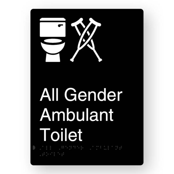 All Gender Ambulant Toilet Braille Sign in Portrait Black Aluminium