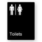 All Gender Staff Accessible Toilet LH Braille Sign in Portrait Black Aluminium