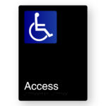 Production Method: BrailleFace – Using our patented BrailleFace production method, each Braille sign will be formed from a single piece of metal creating a compliant continuous face, soft to touch Braille Tactile Sign with no parts adhered to the surface of the sign in any way. As a result, the signs construction will deter vandalism & the sign face has no joins to harbour bacteria. Each Braille sign is made from a single sheet of satin 2pac black aluminium with the text and/or figures printed white.