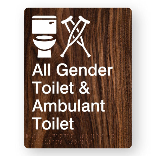 All Gender Toilet & Ambulant Toilet Braille Sign in Portrait Dark Woodgrain