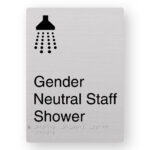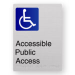 Production Method: BrailleFace – Using our patented BrailleFace production method, each Braille sign will be formed from a single piece of metal creating a compliant continuous face, soft to touch Braille Tactile Sign with no parts adhered to the surface of the sign in any way. As a result, the signs construction will deter vandalism & the sign face has no joins to harbour bacteria. Each Braille sign is made from a single sheet of anodised aluminium with the text and/or figures printed black.