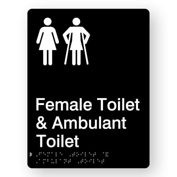 Female Toilet & Ambulant Toilet Braille Sign in Portrait Black Acrylic