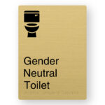 Production Method: BrailleFace – Using our patented BrailleFace production method, each Braille sign will be formed from a single piece of metal creating a compliant continuous face, soft to touch Braille Tactile Sign with no parts adhered to the surface of the sign in any way. As a result, the signs construction will deter vandalism & the sign face has no joins to harbour bacteria. Each Braille sign is made from a single sheet of satin brass finish Aluminium with the text and/or figures printed black.