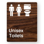 Unisex Toilet & Ambulant Toilet Braille Sign in Portrait Dark Woodgrain