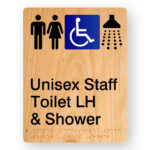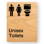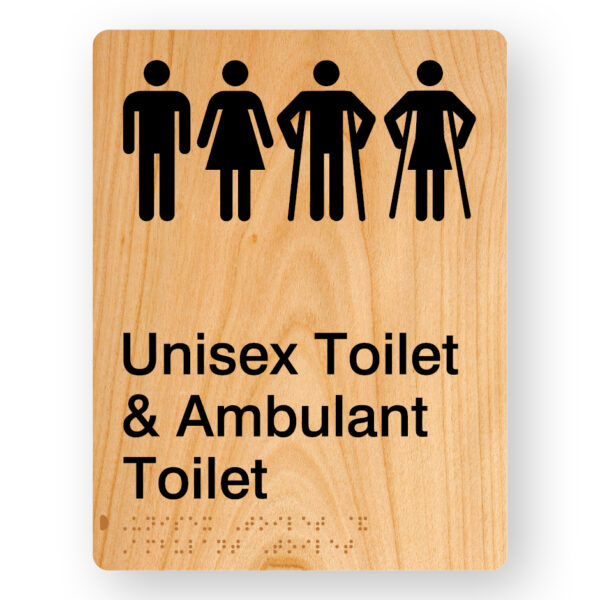 Unisex Toilet & Ambulant Toilet Braille Sign in Portrait Woodgrain Acrylic