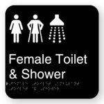 Female Ambulant Cubicle Braille Sign in Square Black Acrylic