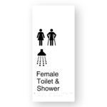 Production Method: BrailleFace – Using our patented BrailleFace production method, each sign will be formed from a single piece of metal creating a compliant continuous face, soft to touch Braille Sign with no parts adhered to the surface of the sign in any way. As a result, the signs construction will deter vandalism & the sign face has no joins to harbour bacteria. Each sign is made from a single sheet of White 2pac painted aluminium with the text and/or figures printed black.